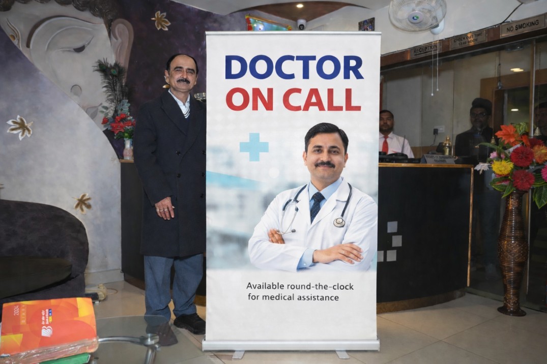 For guest safety and peace of mind, doctor on call service is available. This facility ensures timely medical assistance for families, elderly guests, and travelers staying at Hotel Gayatri Palace, Muzaffarpur.